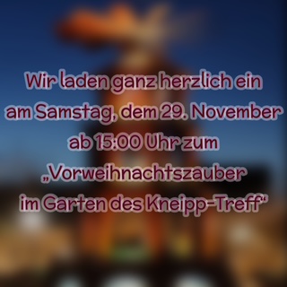 Wir laden ganz herzlich ein am Samstag, dem 29. November ab 15:00 Uhr zum „Vorweihnachtszauber im Garten des Kneipp-Treff“.