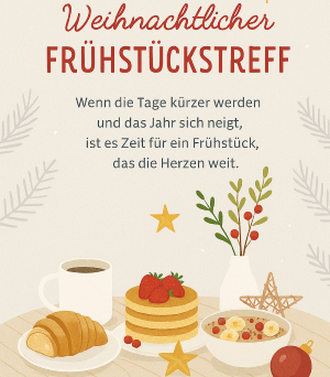 Am Dienstag, den 2. Dezember, laden wir ab 09:00 Uhr ganz herzlich ein zu unserem vorweihnachtlichen Kneipp-Frühstückstreff. Bei einem gemütlichen Frühstück möchten wir gemeinsam in stimmungsvoller Atmosphäre die Adventszeit einläuten. Musikalische Beiträge und das Vorlesen weihnachtlicher Geschichten sorgen für eine festliche Einstimmung auf die schönste Zeit des Jahres.